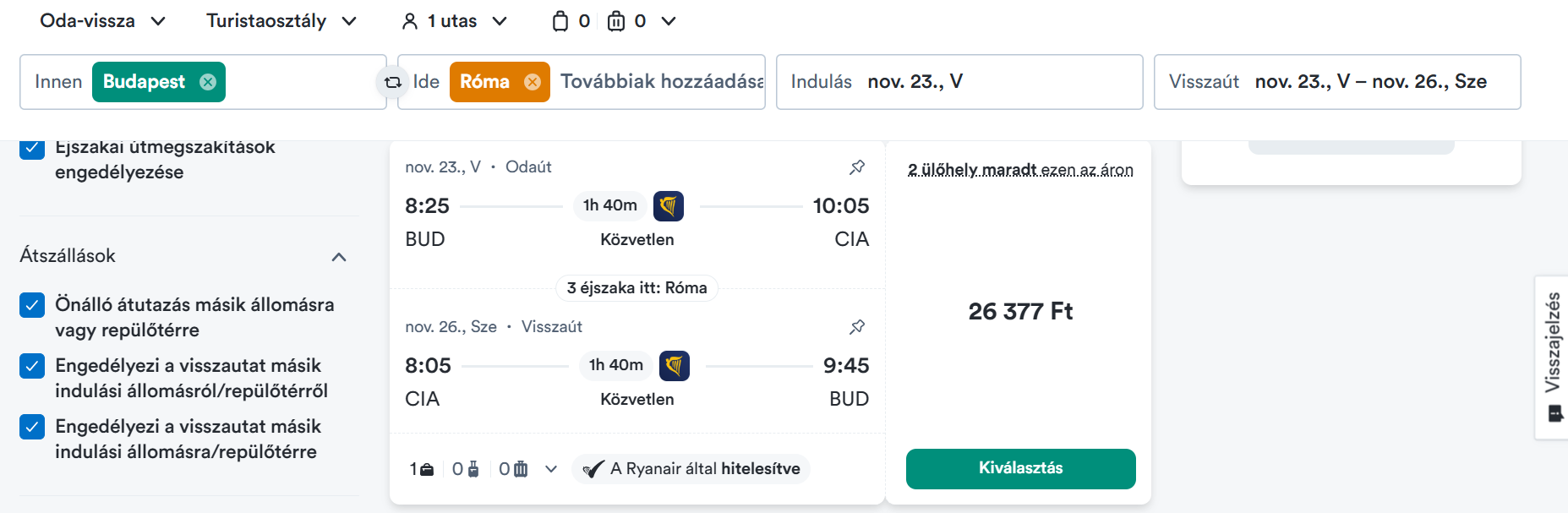 Repjegy foglalás:
